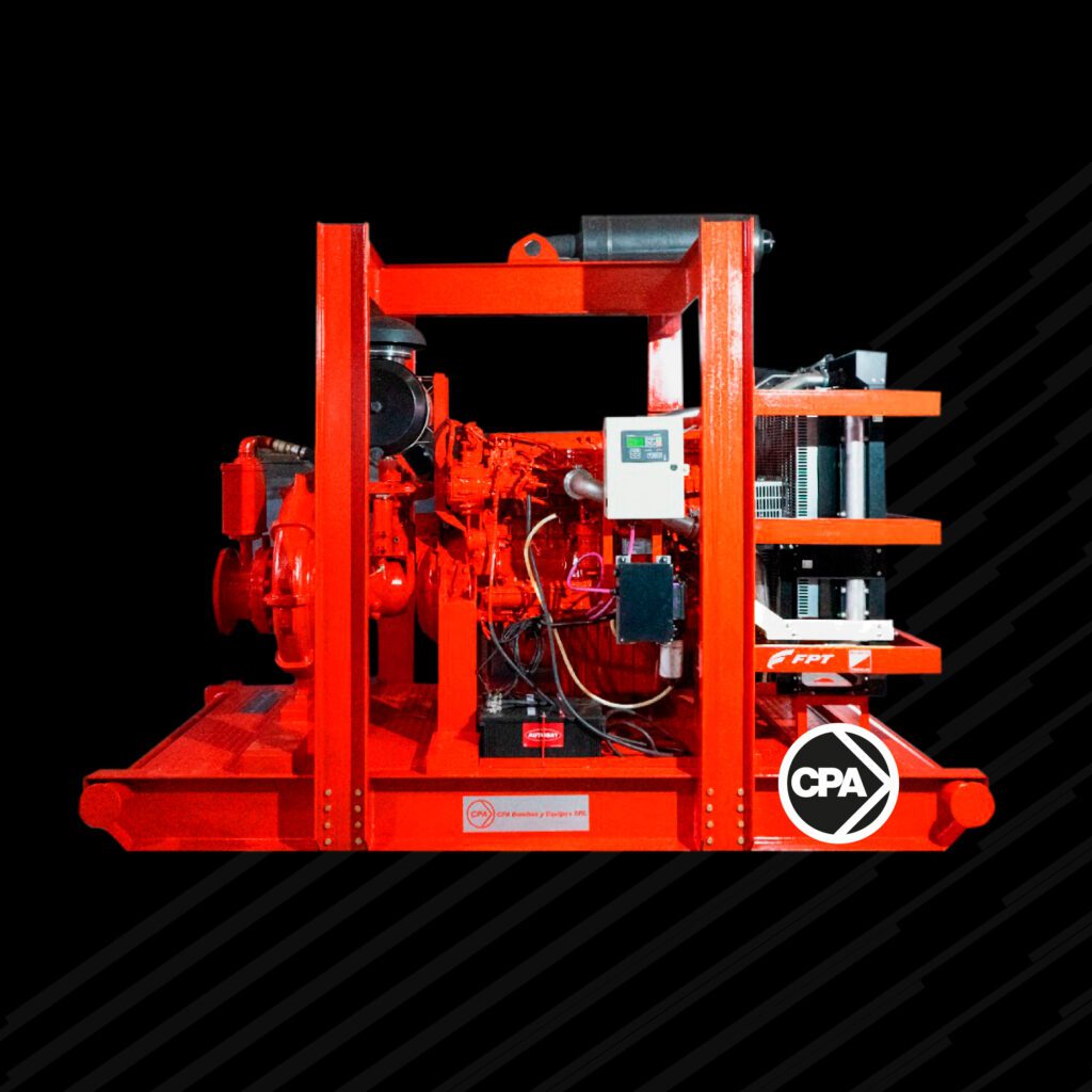 Bombas a diesel de diferentes marcas, selecionadas de acordo com a potência e velocidade de rotação. Eles variam de injeção direta mecânica a injeção eletrônica common rail, intercooler turbo, resfriador por radiador água-ar ou trocador água-água. Esse equipamento possui um selo de aprovação UL/FM.